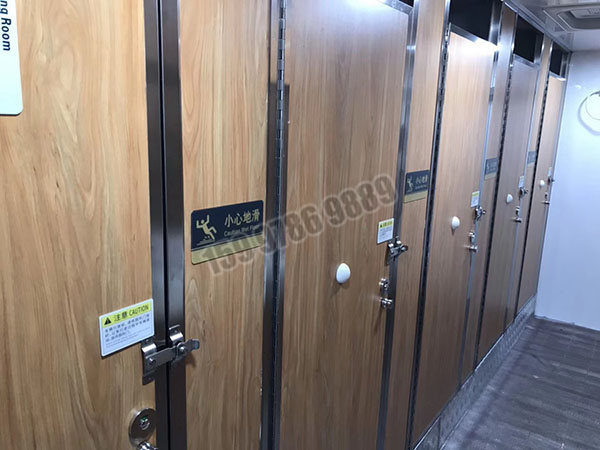 獨立衛生間設計:車輛內部設計了獨立衛生間,重視個人隱私和衛生需求。每個衛生間隔間都配置了獨立的照明燈、衣帽鉤以及換氣窗,以提供用戶更好的使用體驗。此外,儲物網兜等輔助設施也增加了衛生間的實用性。地板采用鋁花紋板+專用防滑隔水墊,既美觀又安全。
